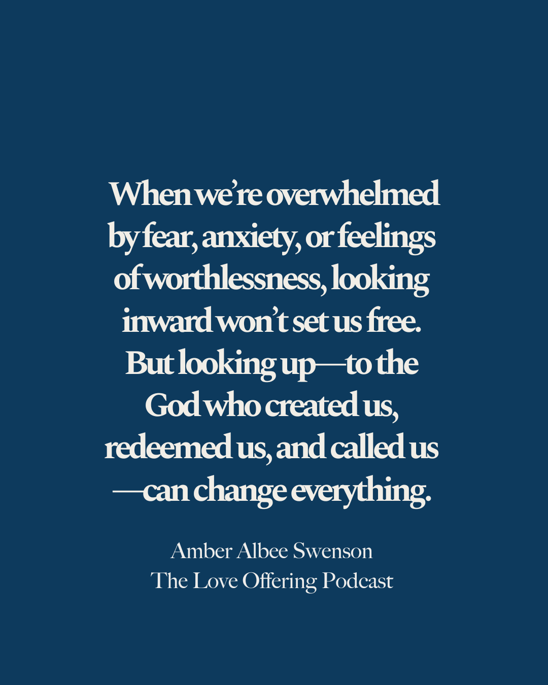 Because when we’re overwhelmed by fear, anxiety, or feelings of worthlessness, looking inward won’t set us free. But looking up—to the God who created us, redeemed us, and called us—can change everything.