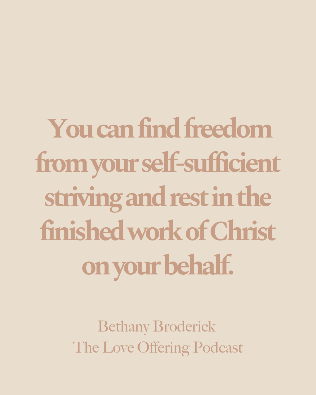 There’s such relief in that. I’m so thankful for that truth. And you talk about that freedom when you stop striving and trust in Christ’s finished work, which is entrusted to you. So what does that practically look like for the woman who is still caught in the cycle of striving?