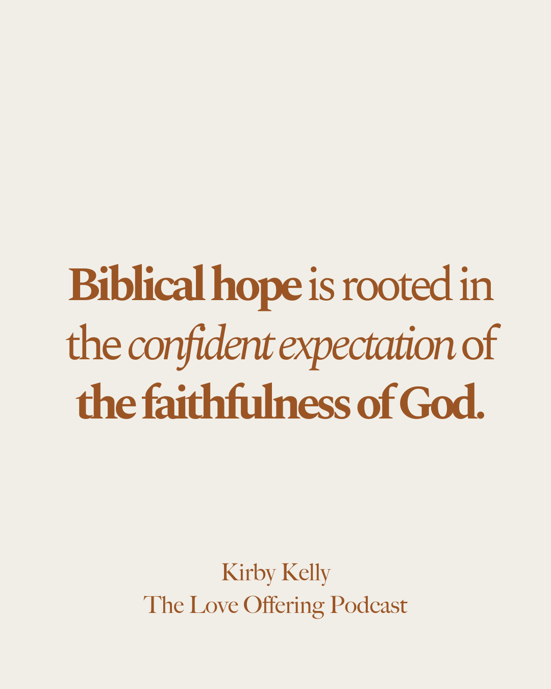 That’s why it’s so important that we know who our God is: not only is he our rock and our firm foundation, but I love what Romans 15:13 says and identifies him as the God of hope. And that, as we put our trust in him from that place, from that place of trust and knowing who he is, we can actually be overflowing with hope from the power of the Holy Spirit. That we can actually have an abundance of joy and peace when it doesn’t make sense, because we are putting our confident expectation, that’s what biblical hope is. It’s not this kind of wishful thinking, like hoping I get a good parking spot or win the lottery. I mean, I hope for both, but like that’s wishful thinking. But biblical hope is rooted in this confident expectation of the faithfulness of God, how he’s faithful to his character, his personhood, how he’s faithful to his promises, his patterns, his presence in our lives. And the more I pressed into that, of actually hoping in what is true, in who is true, Jesus, it changed how I navigated every situation, whether it was addiction with my mom, whether it was just hard friend group situations, I don’t know, backstabbing or slandering or whatever, relationships when men let me down or cross boundaries that I never wanted them to. And I had to figure out, know, God, why did I go through these things? Why did you allow me to go through these seasons and situations of suffering? Why did you allow me to go through a broken world, right? The sinful world we live in. But having hope in him changes everything. And we need to begin to identify where we may have misplaced hope in our own lives if we’re going to get to the place where we can hope in him in every season and situation.