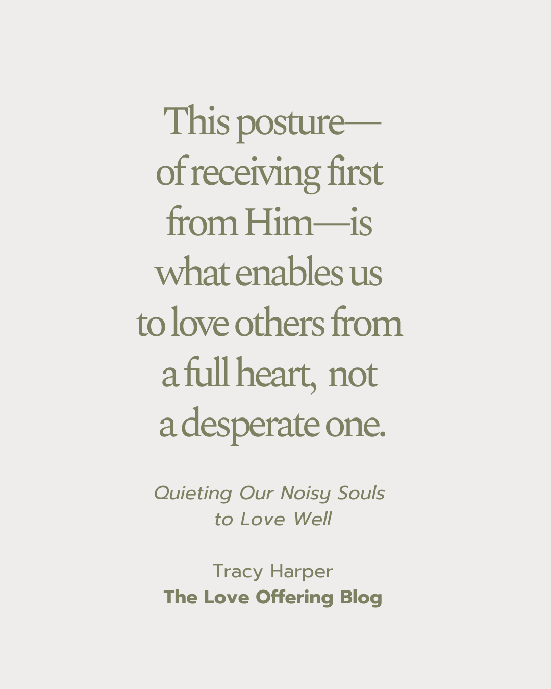 This posture—of receiving first from Him—is what enables us to love others from a full heart, not a desperate one.