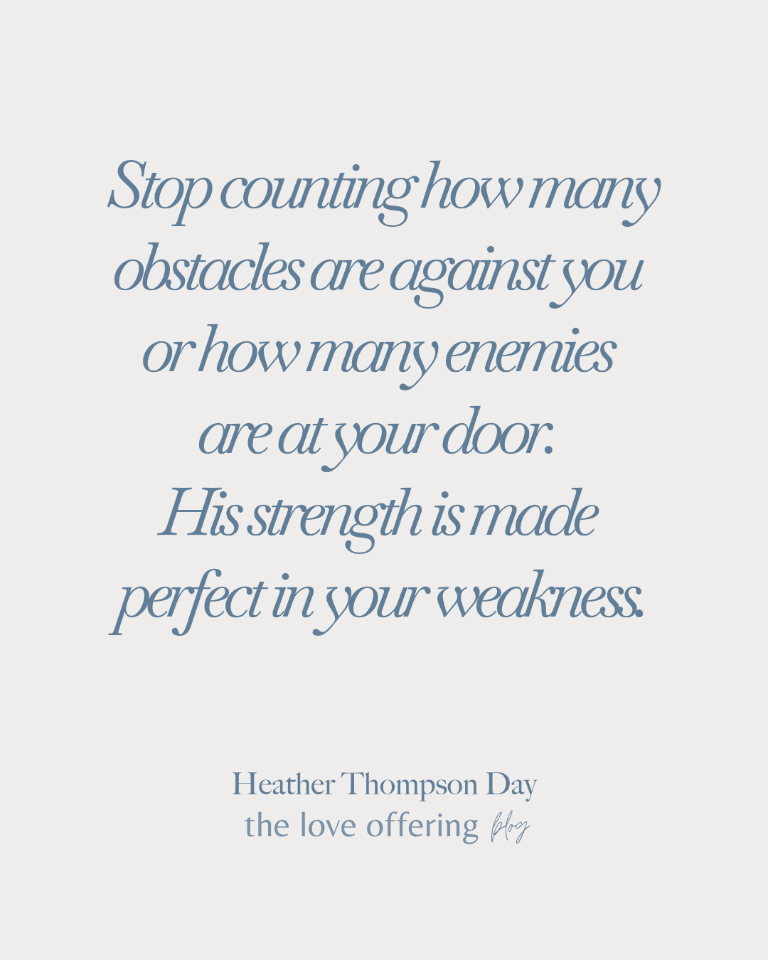 Stop counting how many obstacles are against you or how many enemies are at your door. His strength is made perfect in your weakness.