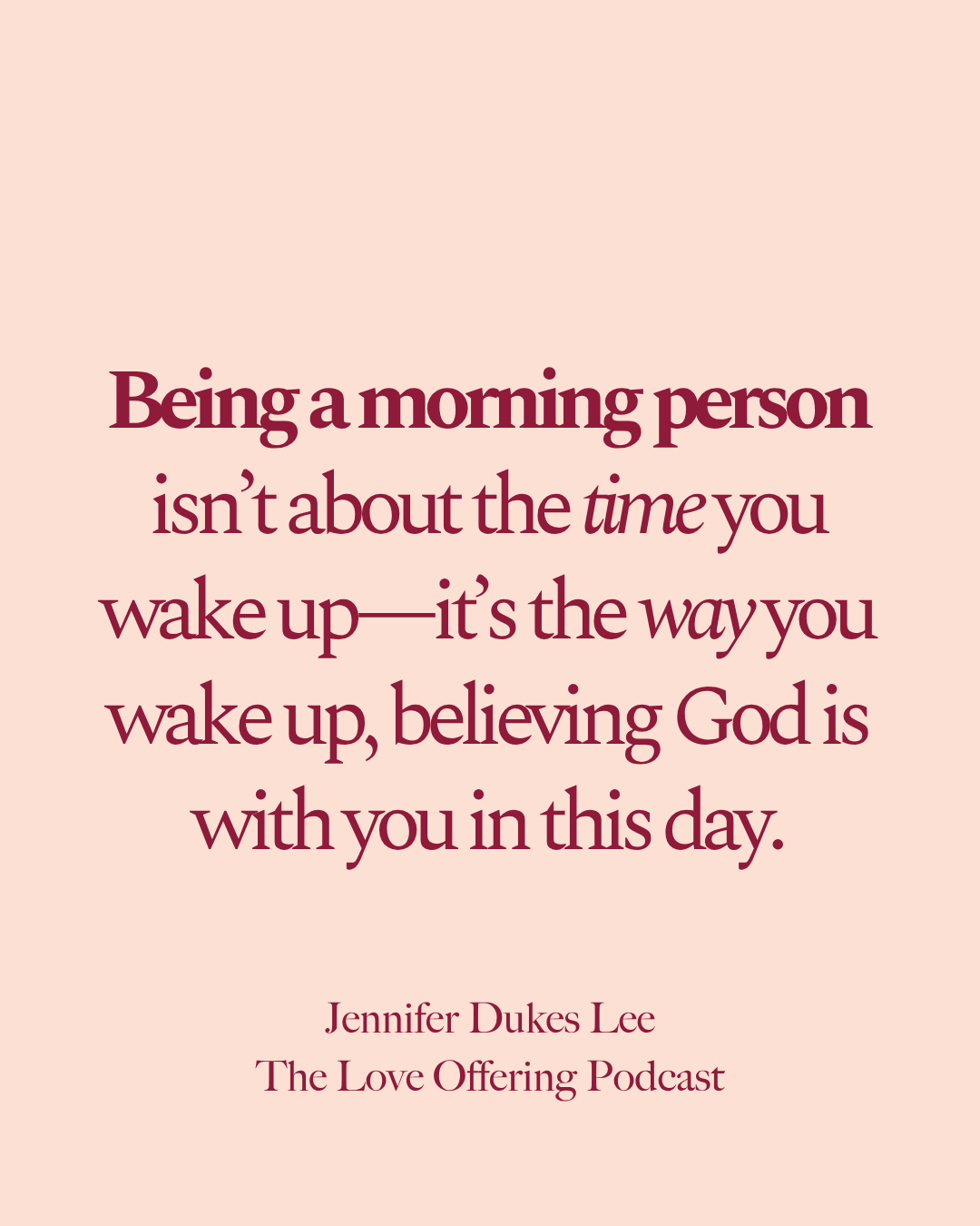 A lot of times, we’re thinking about bad medical news or the grief that meets you as soon as your eyes pop open. So, for everybody, morning isn’t always a fresh start. It’s sometimes the moment when the weight just returns. And so my whole message is not to work hard to have a perfect, performative morning. The message is to meet God in the first moments, even if they’re messy, because it will make a difference in your entire day. And if all that you can do is whisper, God help me. mean that counts, that counts.