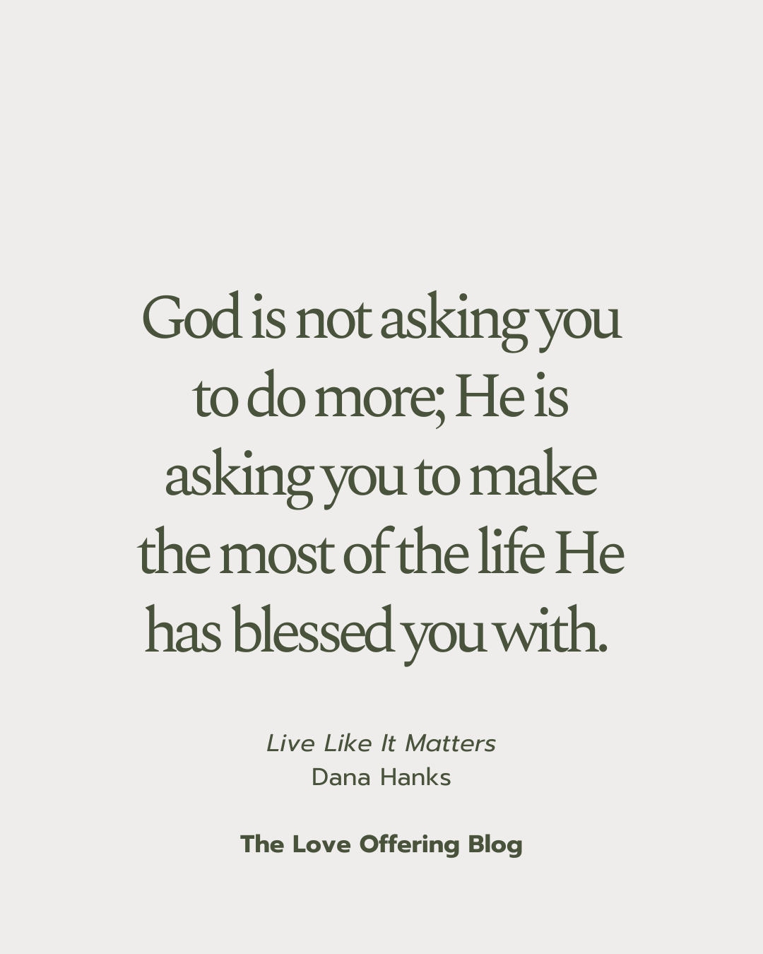 God is not asking you to do more; He is asking you to make the most of the life He has blessed you with. He invites you to trust Him in the midst of it all and let Him meet you where you are.