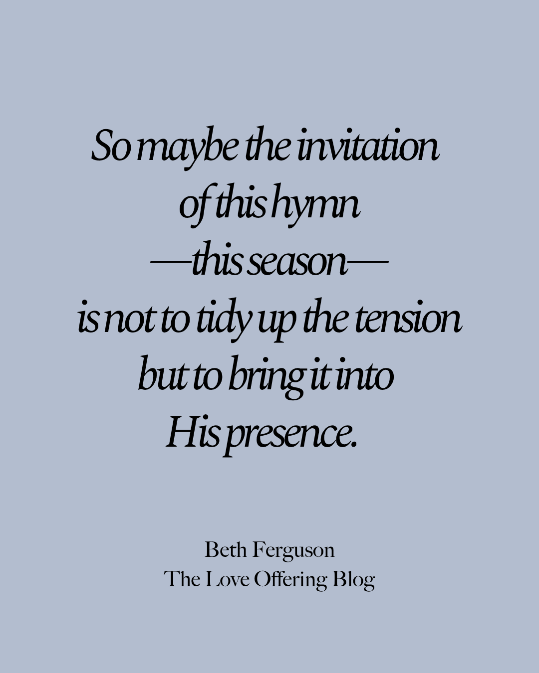 So maybe the invitation of this hymn—this season—is not to tidy up the tension but to bring it into His presence.