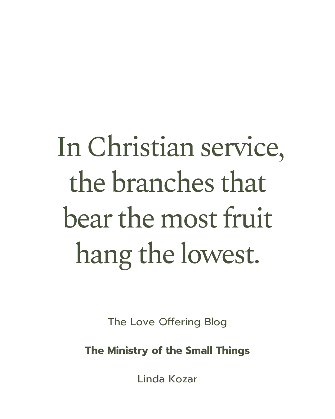 Whatever the circumstance, whatever the task or calling God calls you to, hasten to accomplish it, and glorify God’s name as you do it. In Christian service, the branches that bear the most fruit hang the lowest.