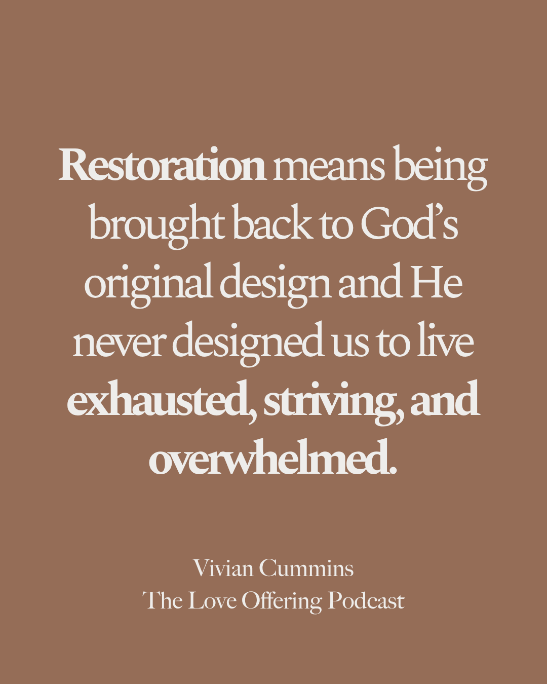 She describes restoration as being brought back to God’s original design—a life not defined by striving, but by surrender. Through her journey, she learned that God never intended for His daughters to live overwhelmed and exhausted. Instead, He invites us into a life led by Him, marked by peace, purpose, and dependence on His strength.