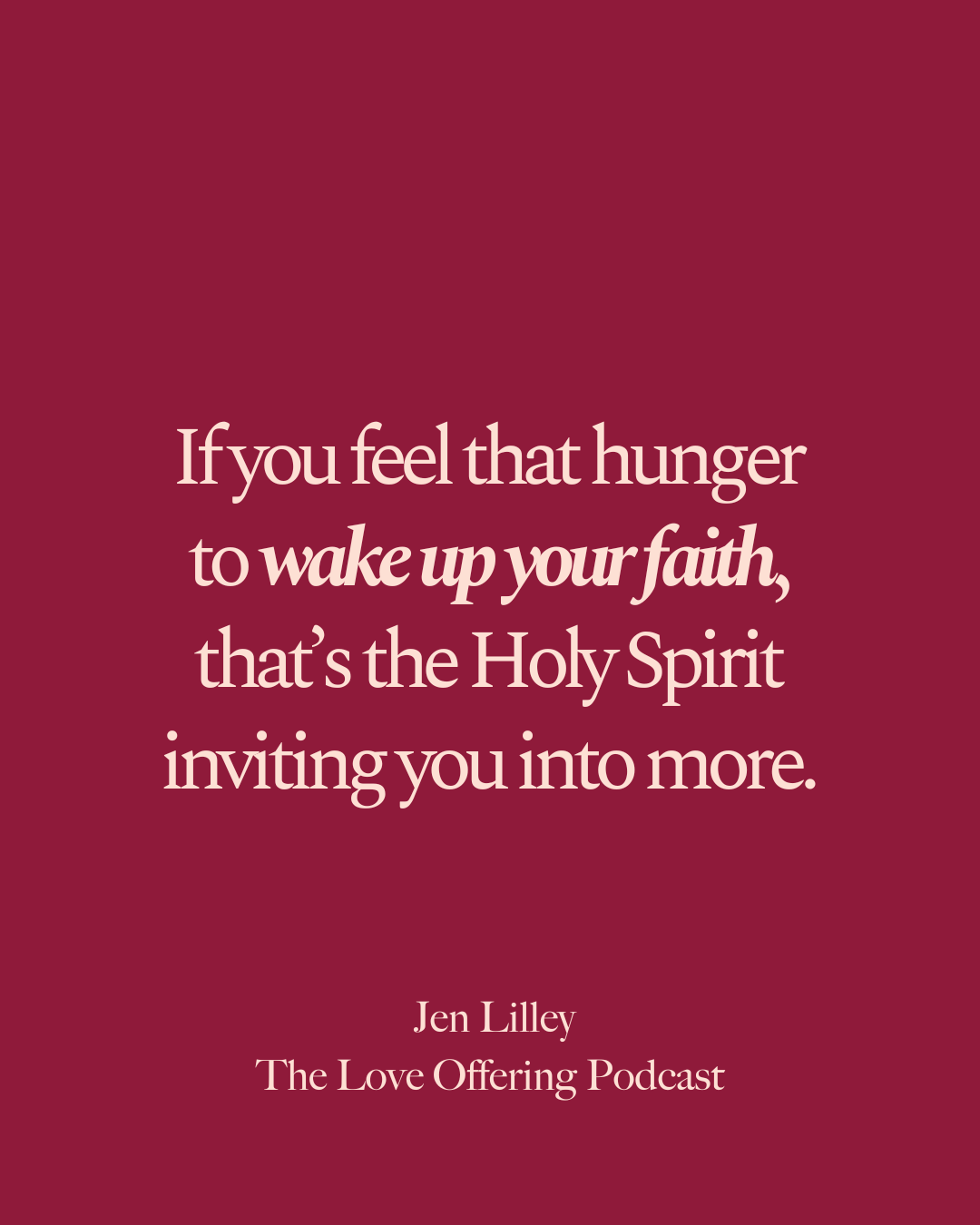 I would say, sister, the Lord put that on your heart, not you, because it says that God loved us first. And he’s always, it’s always the Holy Spirit when we feel convicted. Because conviction is different than guilt. Conviction is different than condemnation. Conviction produces fruit. Conviction produces action. Conviction leads to something redemptive. If you feel that hunger and that passion, that’s the Holy Spirit inviting you into all that he is because he does have more for you. And he has more for all of us. I think a lot about whether we pray correctly. We pray so many times. Lord, give us more of you. And he’s like, that’s stupid. I can’t. I gave you all of me. I gave you all of Jesus. It is finished. It’s completed. I gave you my Holy Spirit. What I need is more of you. He needs more of us, not the other way around.