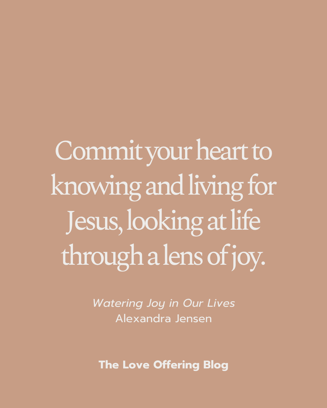 Pick out a few of these ideas that you can commit to daily! The key is consistency. Commit your heart to knowing and living for Jesus, looking at life through a lens of joy. Saturate your soul in satisfaction by drawing near to the throne of God’s grace. Rely on Jesus to grow good things inside of you. Be willing to partner with the Holy Spirit and pick up the watering can to help joy thrive.