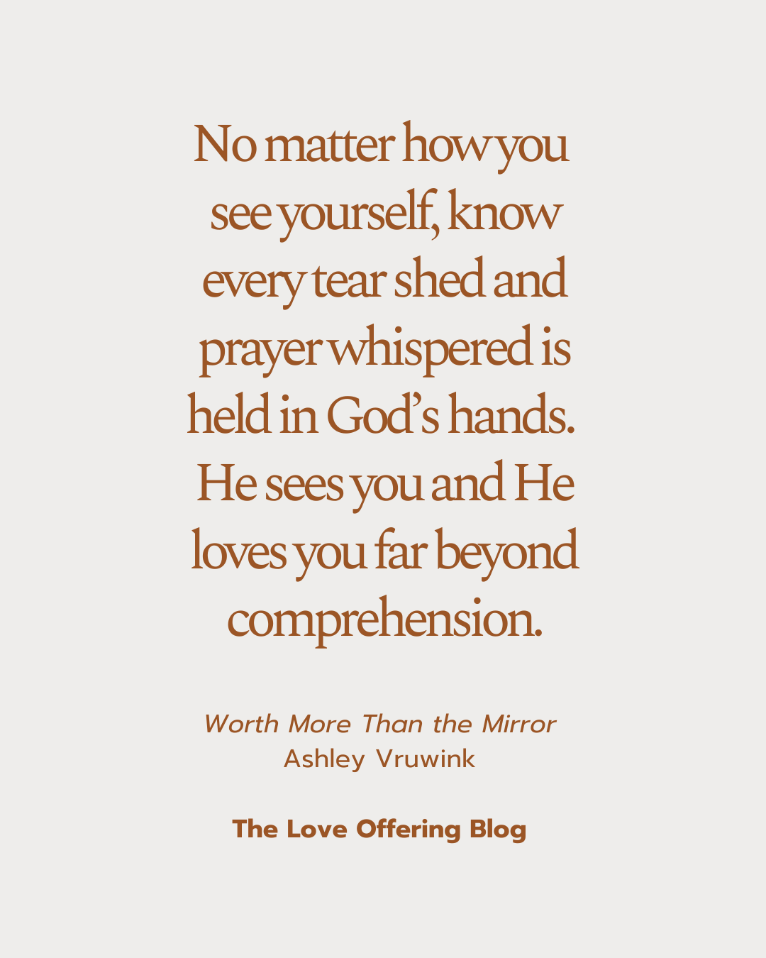No matter how you see yourself, know every tear shed and prayer whispered is held in God’s hands. He sees you and He loves you far beyond comprehension.
