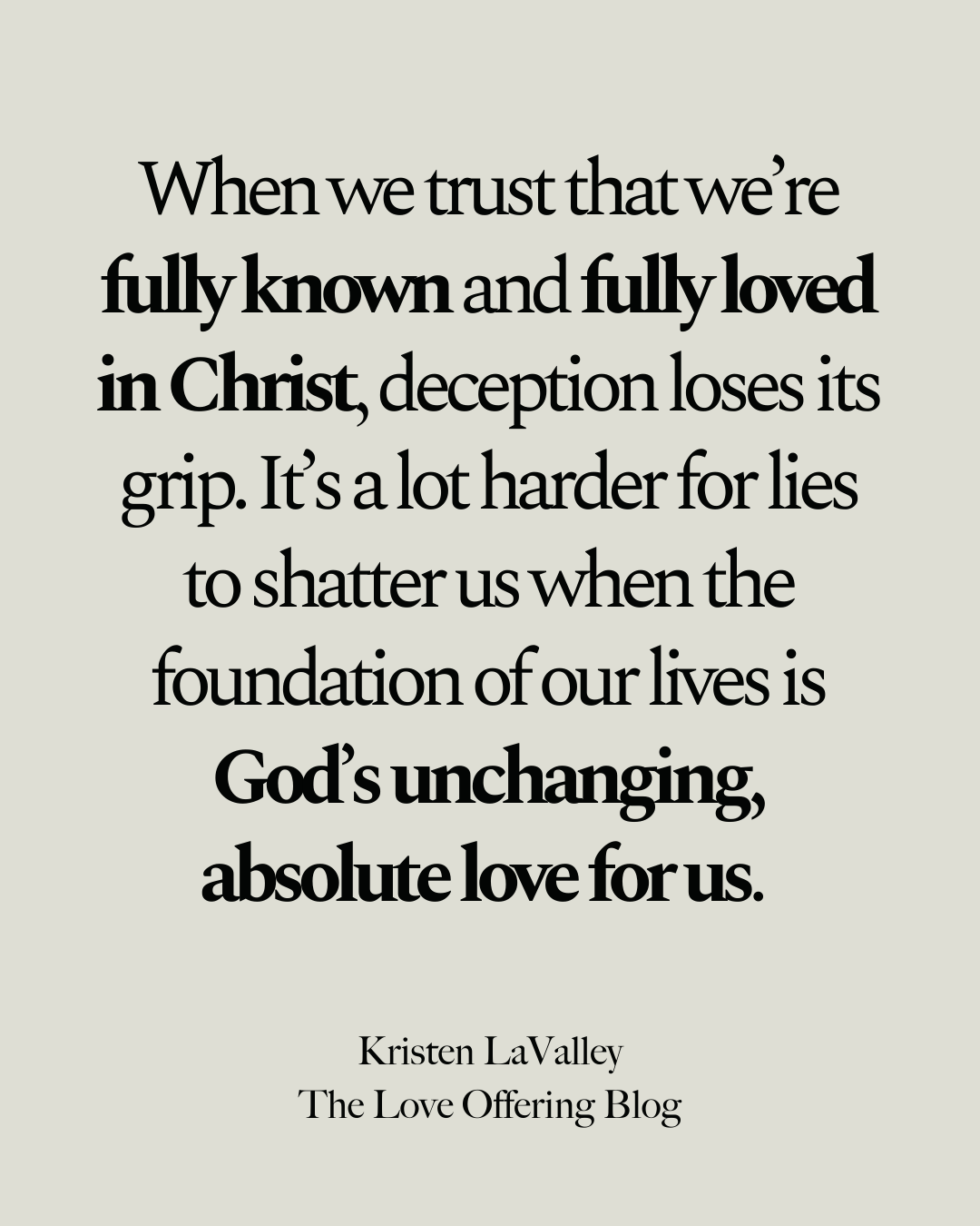 When we trust that we’re fully known and fully loved in Christ, deception loses its grip. It’s a lot harder for lies to shatter us when the foundation of our lives is God’s unchanging, absolute love for us. Healing comes not just from unlearning lies but from anchoring ourselves in what has always been true: that we belong to him and that he is making us whole.